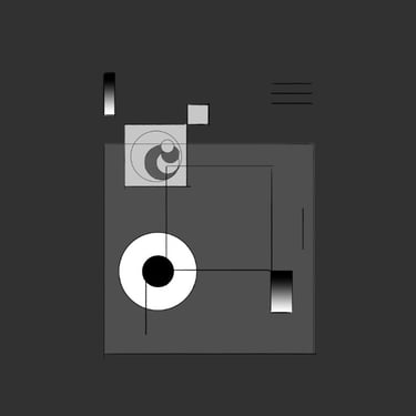 The style is geometrical and abstract, combining 2D and 3D assets in monochrome world.